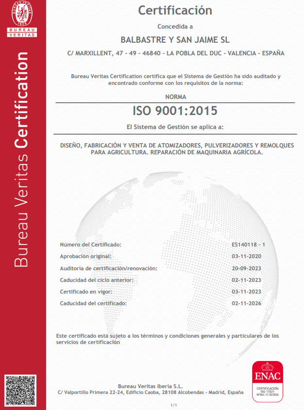Más de 100 años dedicados al desarrollo, diseño y fabricación de atomizadores, pulverizadores y toda clase de equipos para la protección de los cultivos.